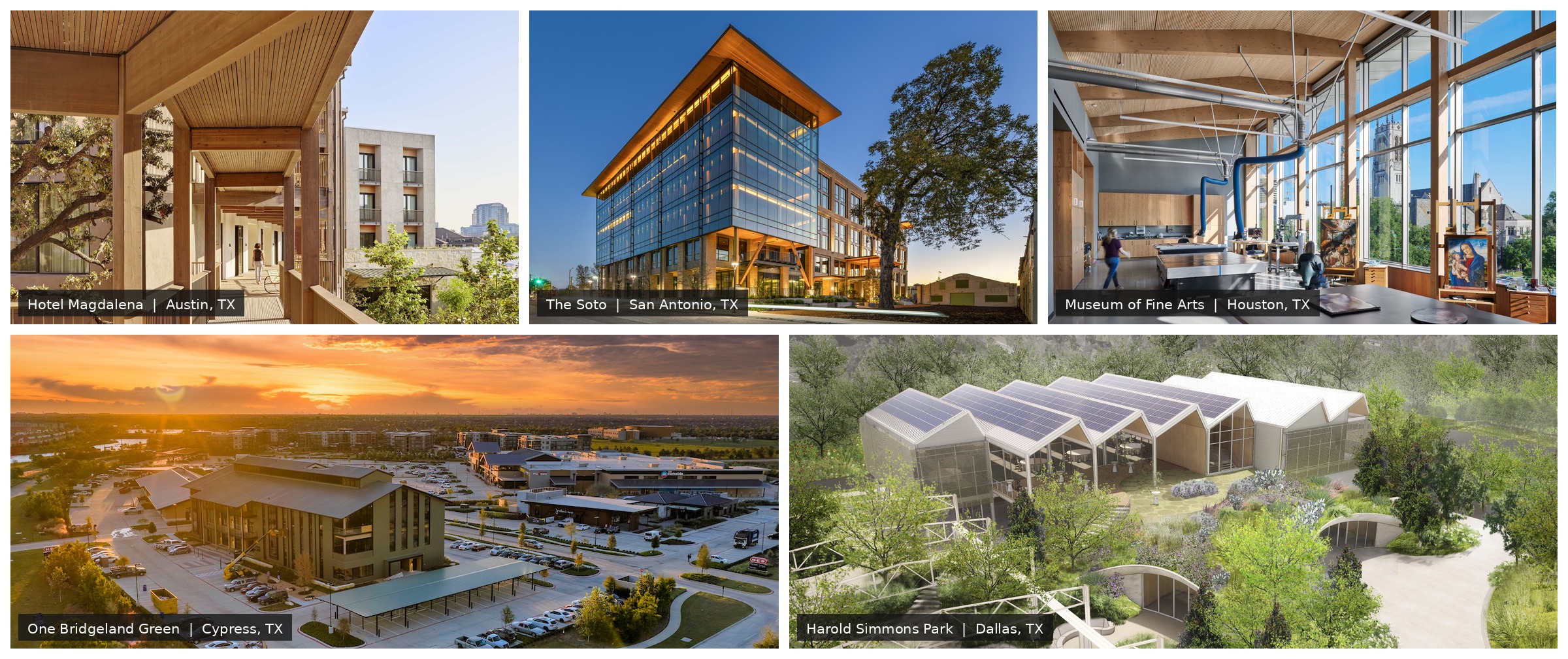 The partnership with Lake Flato goes back a decade to a cold call about Hotel Magdalena in Austin, Texas. Since then we've delivered five projects together (Museum of Fine Arts Houston, The Soto, One Bridgeland Green, and still-in-design Harold Simmonds Park). Our two teams came together to design and build a never-before-built curved dowel-laminated structure. Only made possible by the trust and mutual vision established over ten years of working alongside Lake Flato.